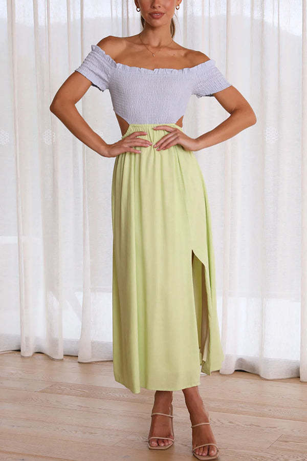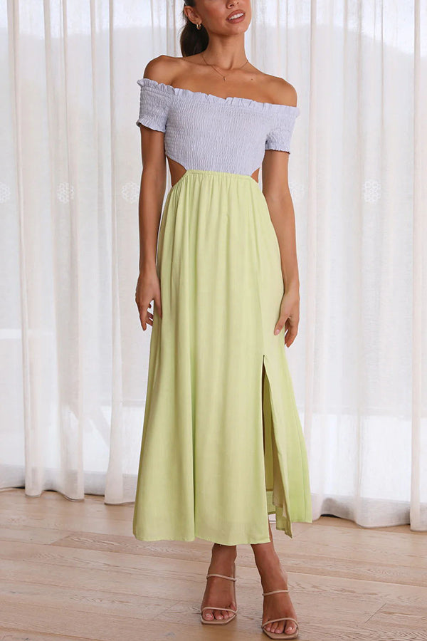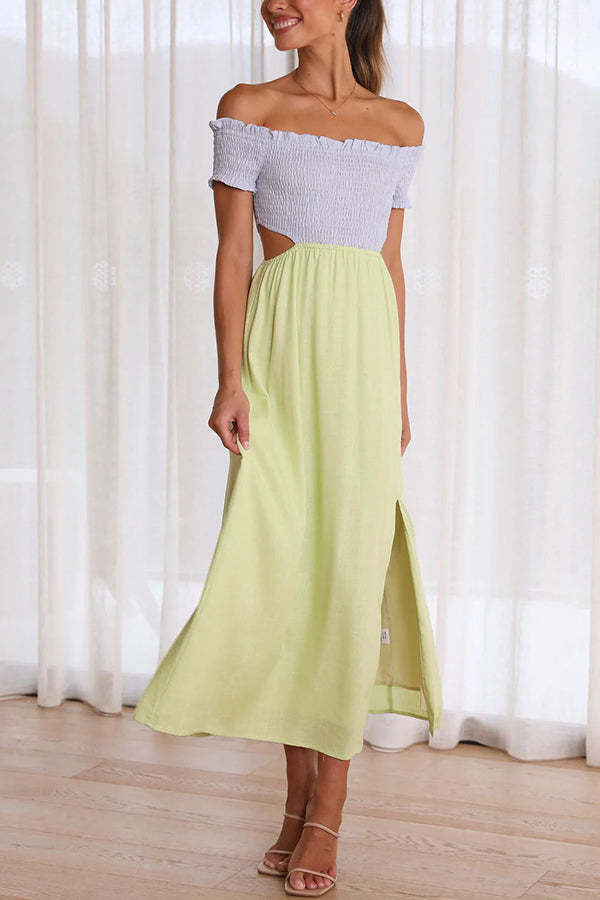 Live with Sunshine Colorblock Smocked Cutout Midi Dress